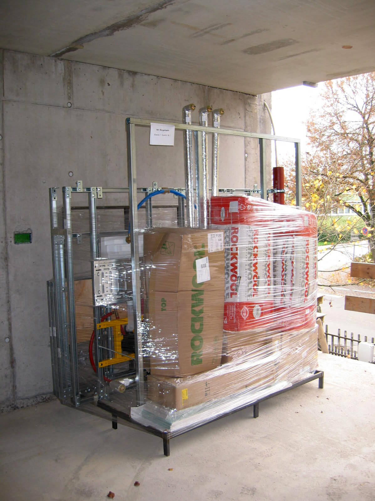 Anlieferung der vorgefertigten Gebäudetechnik Module