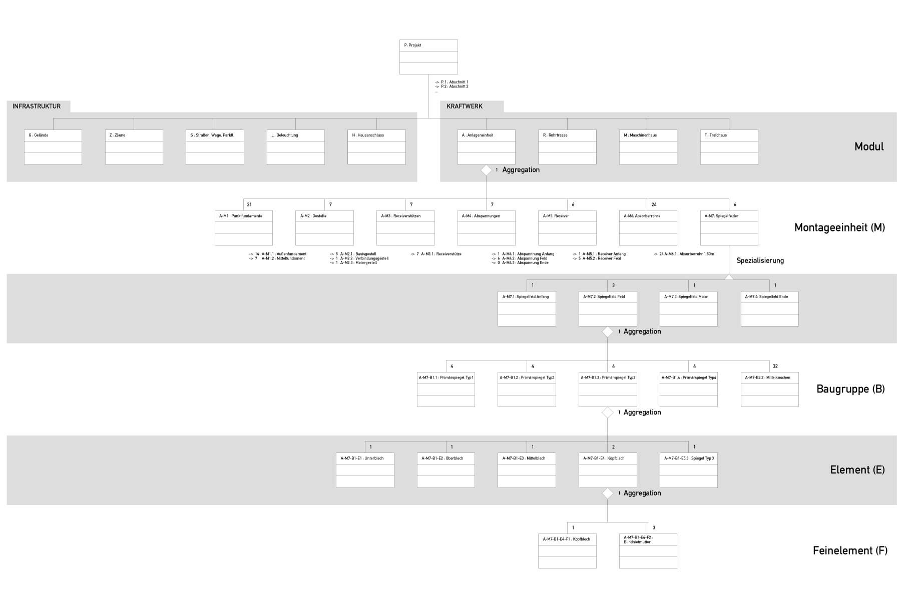 Der Modellierungsansatz von digitales bauen, der schon vielfach auf Gebäude angewendet wurde, lässt sich dabei ideal auf das Kraftwerkskonzept übertragen. Es entsteht so ein integrierter Gesamtbaukasten welcher einfach in einer objektorientierten Datenbank bzw. einem Warenwirtschaftssystem abgebildet und hierüber gesteuert werden kann. Ein Operationsmodell beschreibt dabei die Nutzung des Systems und die notwendigen Abfolgen bis zum schlüsselfertigen Kraftwerk.