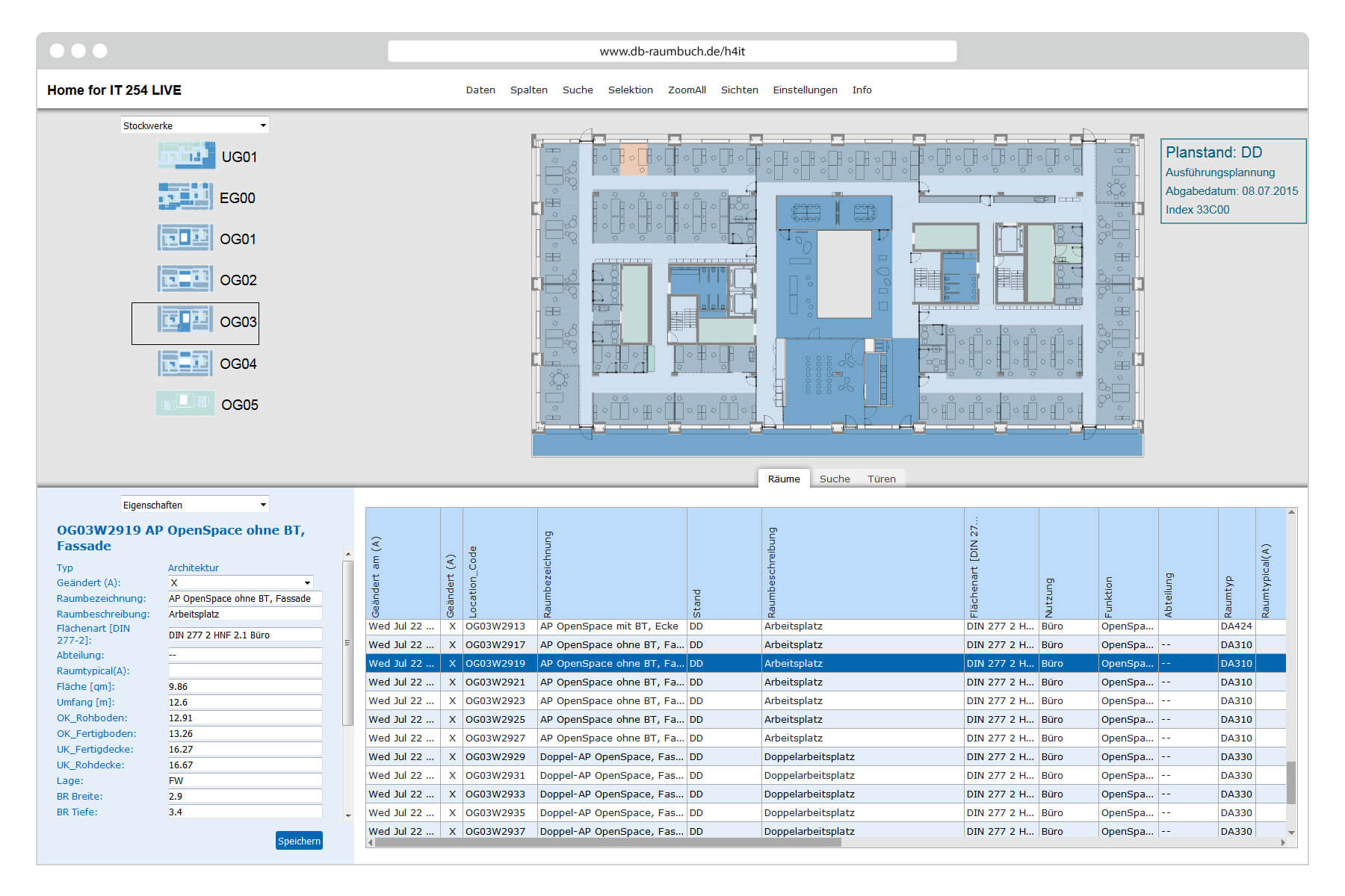 Integrationsplan Decke der 4 Bürogebäude H4IT