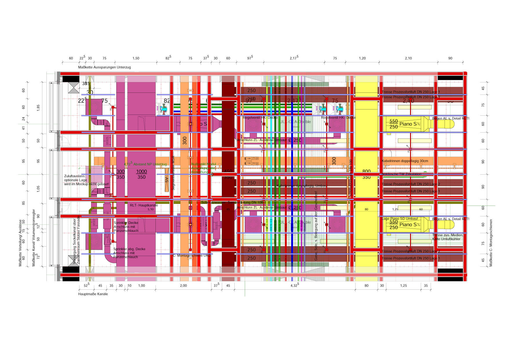 Die Ausführungsplanung und Vorbereitung der Vergabe in der Phase DD (Detail Design) wurde für die Architektur, Tragwerksplanung und TGA Planung jeweils durch Fachplaner bzw. Architekten erbracht und sowohl konstruktiv als auch datentechnisch in ein digitales Gesamtmodell mit dem Schwerpunkt der Modularisierung integriert. Mit der Durchführung und Überwachung wurde seitens der Bauherrn ein Construction Manager eingesetzt.